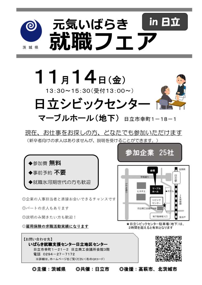 令和7年度元気いばらき就職フェアin日立を下記のとおり開催します。